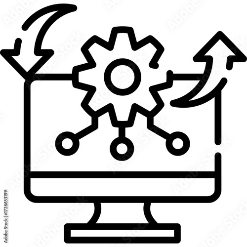 Automation Process Outline Icon on Monitor with Gear and Arrows