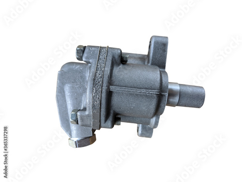 Automotive engine oil pump isolated on white background. New spare parts.