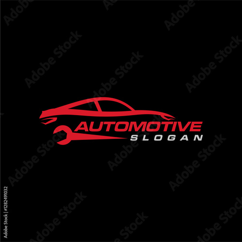 automotive logo design with car, speedometer and gear
