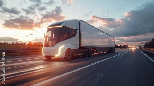 autonomous electric truck driving on highway future of sustainable transportation and logistics