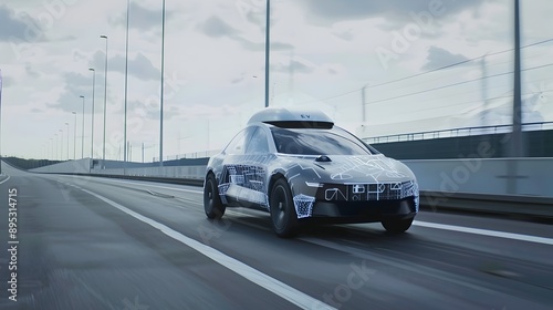 Autonomous Electric Vehicle Navigating Futuristic Urban Expressway