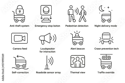 Autonomous vehicle interface features illustrated with icon set