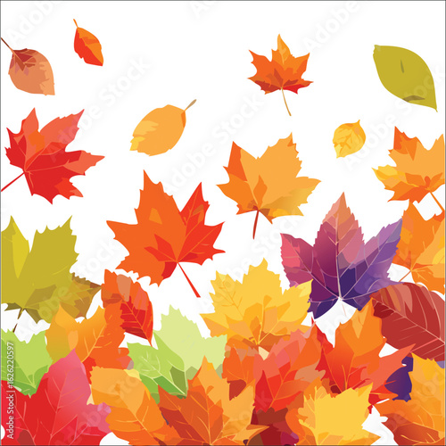 Autumn abstract colorful Background. Fall season and Thanksgiving theme. Editable vector templates with leaves and geometric pattern. Nature elements for poster, banner, cover, card, Sale, advertising