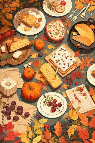 Autumn and Fall Themes, rustic fall celebration with festive mood, flat design illustration