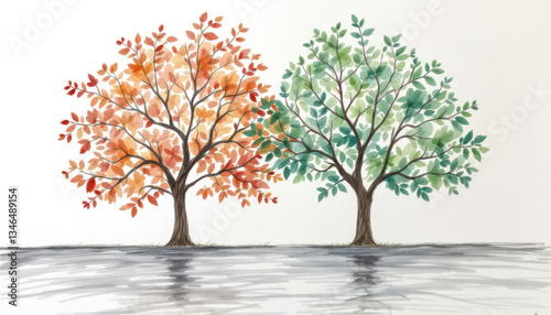 Autumn and Spring: A Watercolor Harmony of Two Trees