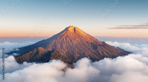 Autumn and winter mountains showcasing a snowy landscape with a majestic peak under a cloudy sky, capturing the beauty of nature and travel destinations like Fuji and Kamchatka