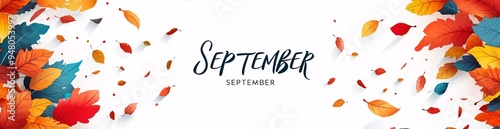 Autumn background with colored leaves illustration on a white background in a with "SEPTEMBER", a background design for text, and an autumn banner