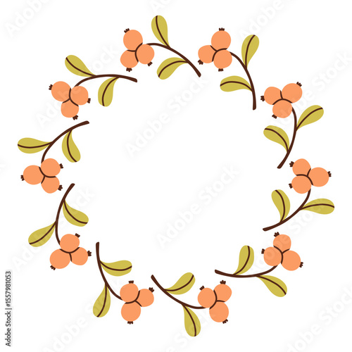 Autumn berry circle frame. Round border made of fall berries. The berries have different shapes and are arranged in a circle. Vector flat isolated on white background.