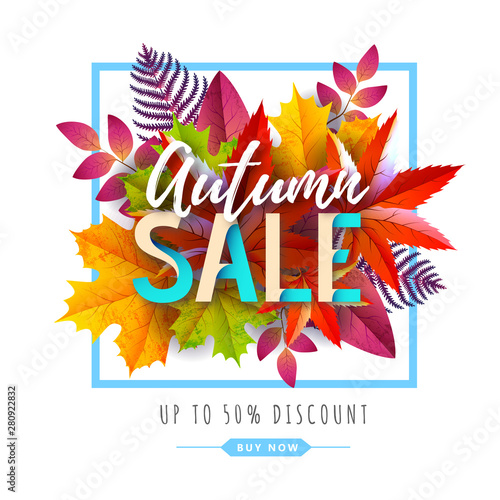 Autumn big sale typography poster with autumn leaves. Nature concept