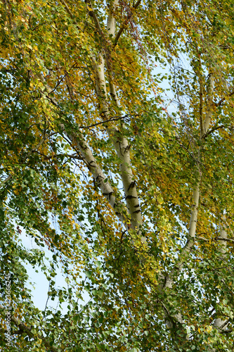Autumn birch trees from below