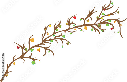 Autumn branch with colorful leaves. Autumn decoration of leafy tree branches, object white isolated.