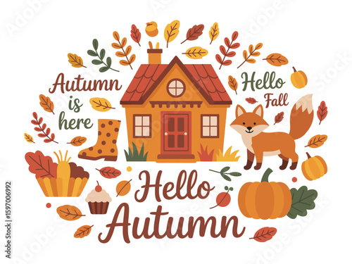 Autumn Calligraphy and Vector Leaves for Fall Invitations