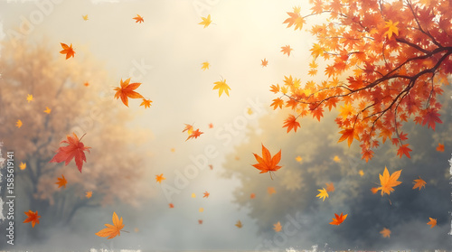Autumn Colored Maple Leaves Falling From Tree in Scenic Park Setting