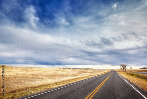 Autumn country highway landscape, travel concept.