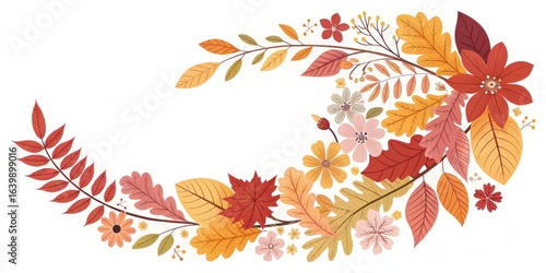 Autumn Flower and Leaves Wreath Graphic, Floral , Fall