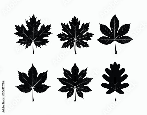Autumn Foliage Silhouettes Isolated Vector Templa