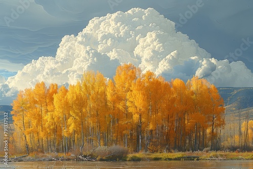 Autumn Forest with Colorful Leaves and Flowing River, Perfect Nature Scene for Relaxation