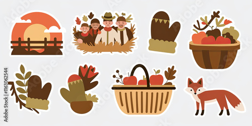 Autumn Harvest Stickers Fall Apples Family Fox Mittens Sunset