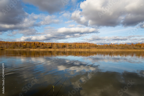 Autumn landscape - lake, clouds and forest