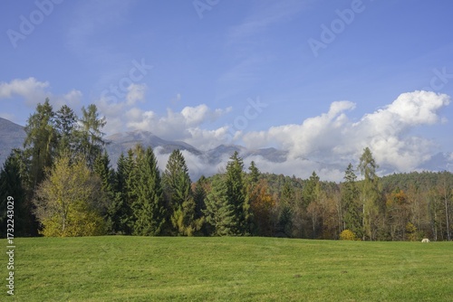 Autumn landscape at the Arte Sella site, Borgo Valsugana, Valle di Sella, Trentino, Italy