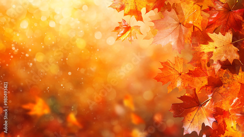 Autumn Landscape background - Trees And Orange Foliage In Park At Sunset
