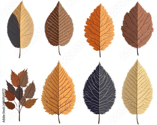 Autumn leaf collection. Various fall leaf illustrations in warm tones