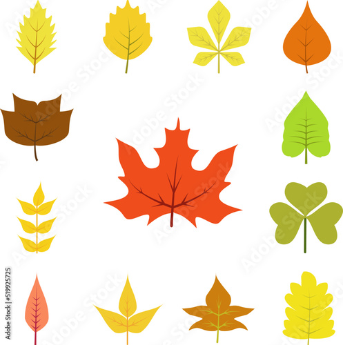 Autumn leave, red icon in a collection with other items