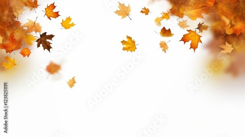 Autumn Leaves Falling Gently Against Soft White Background Creating a Calming and Serene Atmosphere for Seasonal Inspiration and Nature Aesthetics