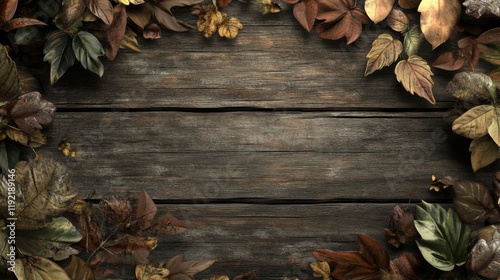 Autumn Leaves Frame on Rustic Wooden Background: A Seasonal Design Element for Fall Decorations