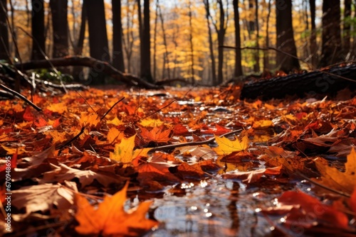 Autumn leaves in a vibrant forest. Colorful fall foliage on the forest floor.