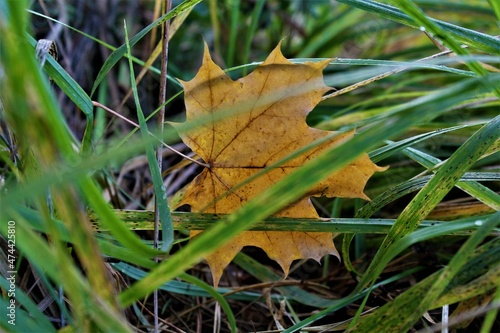 autumn leaves in the snow