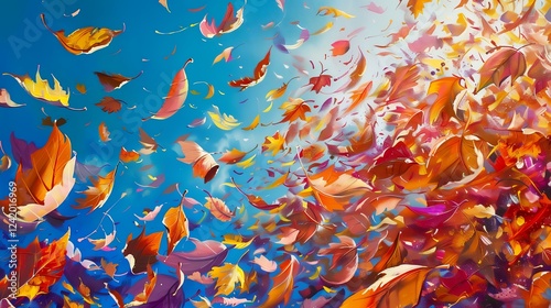 Autumn Leaves in the Wind – Vibrant Fall Foliage Against a Blue Sky