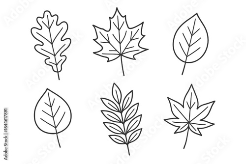 Autumn leaves outline vector set. Collection of minimalist fall foliage icons. Simple doodle line art of maple, oak and forest tree leaves. Isolated design elements.