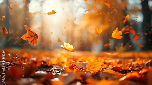 Autumn Leaves Scattered on the Forest Floor During a Sunny Day