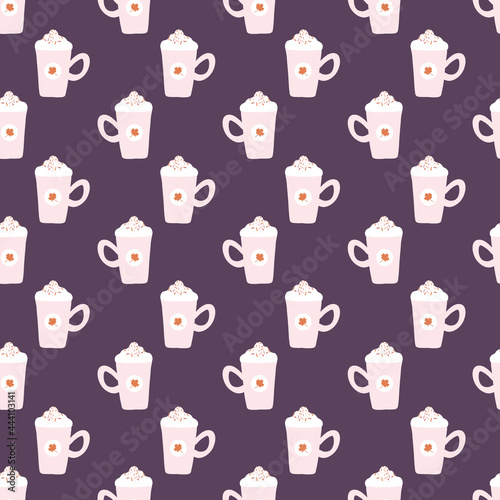 Autumn Purple and Pink Coffee Latte Cups Seamless Pattern Background