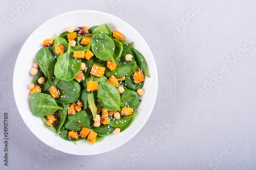 autumn salad with pumpkin , spinach , chickpea and sesame