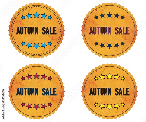 AUTUMN SALE text, on round wavy border vintage, stamp badge.