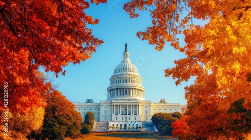 Autumn Scene with Capitol Building Surrounded by Colorful Leaves