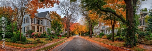 Autumn Serenity: Picturesque Tree-Lined Street in a Rural Somerville Neighborhood, Massachusetts