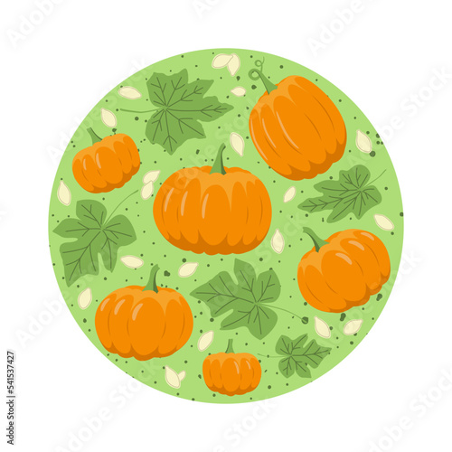 Autumn set with pumpkin, leaves and seeds. Flat, vector