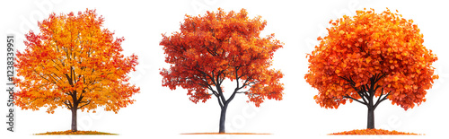 Autumn transformation of trees nature park artwork display vibrant colors, seasonal change, transparent background