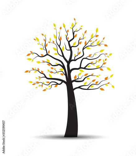 Autumn tree with falling leaves