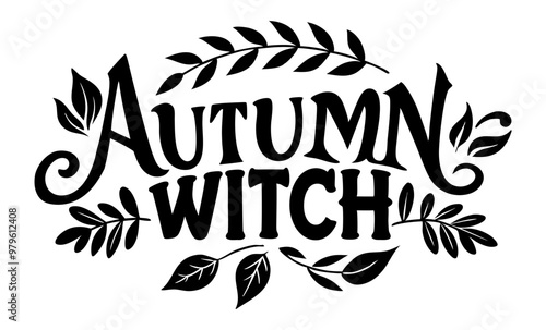 autumn witch t-shirt design, hand drawn lettering with creepy vibes isolated on white background, calligraphy graphic design typography element, handwritten vector sign