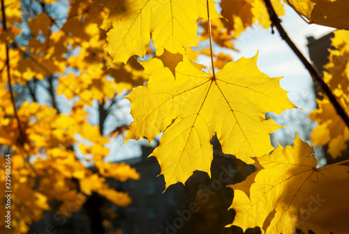 Autumn Yellow Leaves on a tree in sunny day