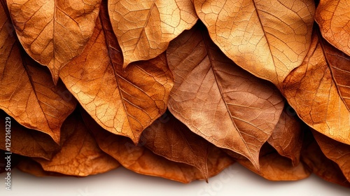 Autumnal Dried Leaves, Stacked, White Background, Decorative