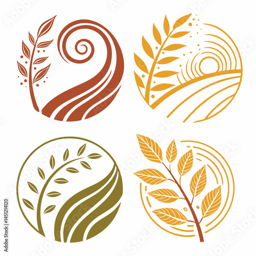 Autumnal Floral Design Elements With Swirls And Leaves For Creative Projects