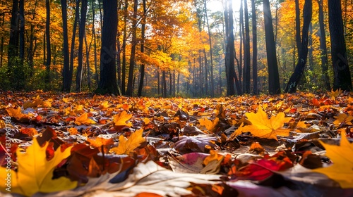 Autumnal Forest Path: A Symphony of Golden Leaves