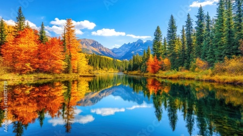 Autumnal Reflections in Mountain River Valley