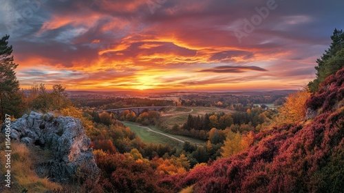 Autumnal Sunrise Panorama: Breathtaking View of a Valley Bathed in Golden Hues