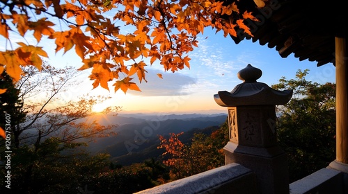 Autumnal Sunset Panorama from Mountaintop Pavilion